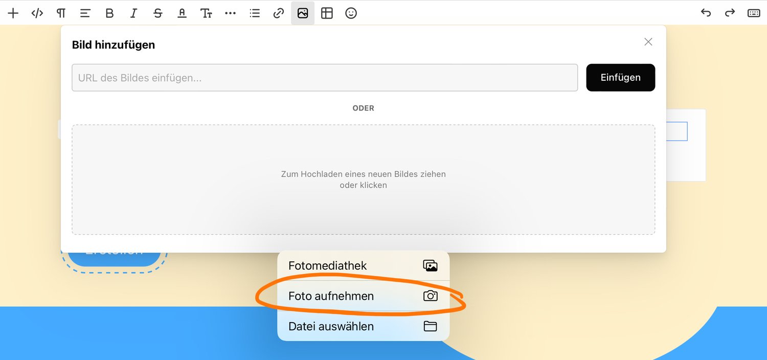 Variante iPad: Nun wählst du "Foto aufnehmen". So öffnet sich die Kamera und du kannst direkt das Foto machen.