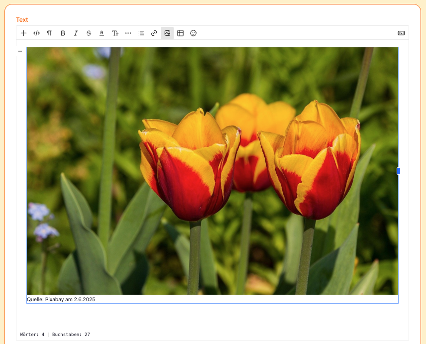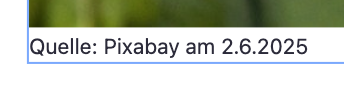 Falls du mal nicht ein selbst gemaltes Bild oder ein selbst erstelltes Foto auf myMoment einfügen möchtest, kannst du ein Bild von Pixabay einfügen. So ist sicher gestellt, dass du kein Bild von jemandem "klaust", das du nicht darfst. Du lernst so auch gleich, wie eine Quellenangabe aussehen kann. Diese Quelle wird automatisch eingefügt: