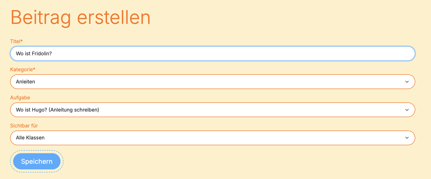 Wähle zudem für wen dein Beitrag sichtbar sein soll. Also deine Klasse ODER für alle. Wähle dann "Speichern"
