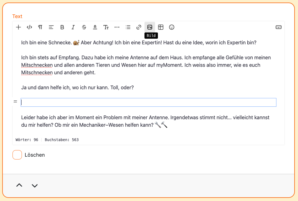 Die einfachste Art, auf myMoment ein Bild in den Beitrag einzufügen, ist über "Element hinzufügen":