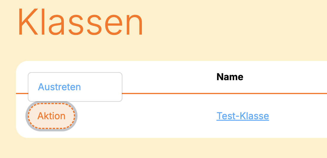 Wähle anschliessend bei der Klasse, aus der du austreten möchtest: Aktion, Austreten.