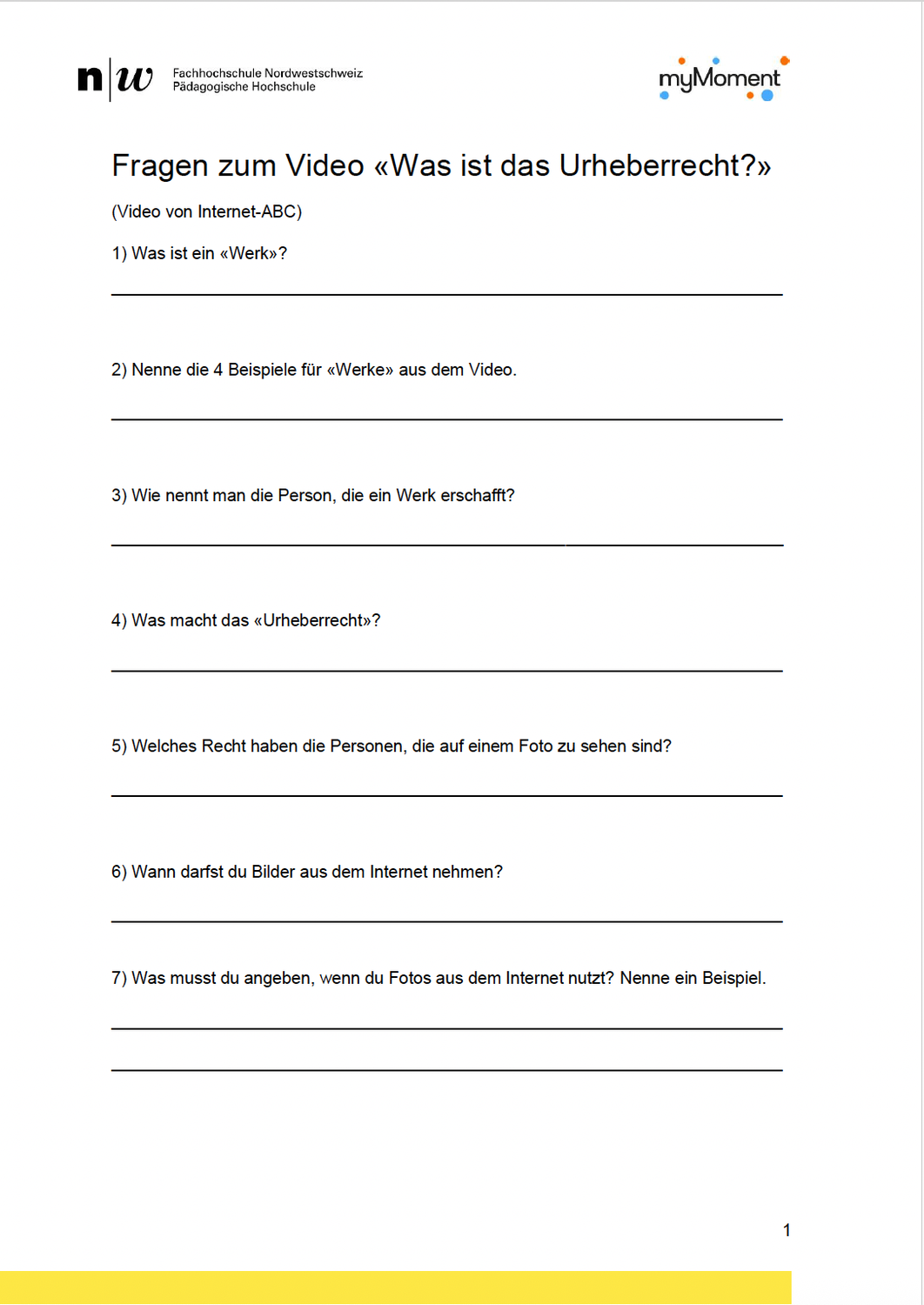 Anhand des Arbeitsblatts (2 Seiten) «Leitfragen: Was ist das Urheberrecht?» vertiefen die Schüler:innen die Inhalte des Video. Die Fragen können auch einzeln als Karten geschnitten und verschiedenen "Experten"-Gruppen zugeteilt werden, so dass im Anschluss im Plenum alle Fragen präsentiert und besprochen werden können.